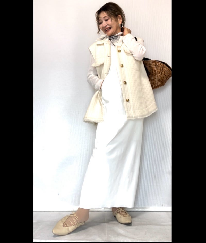 特にアクセサリーは、年齢を重ねるほど「顔から近い場所に光を足す」という意味で重要になってきます。肌のトーンが変化してくるからこそ、イヤリングやネックレスで顔周りを明るく見せることが、若々しさの秘訣になってくるのです。