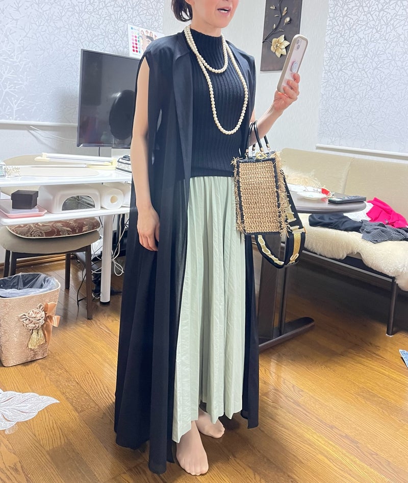 黒のシアーのロングジレ。